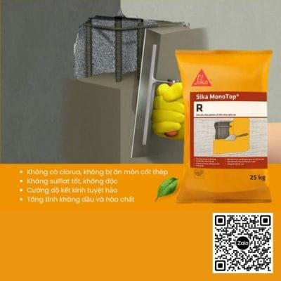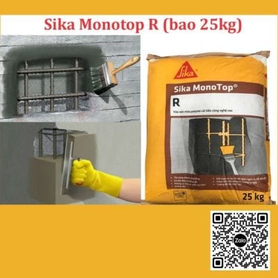 Sika Monotop R là vữa sửa chữa polyme cải tiến công nghệ cao. Sika Monotop R là loại vữa xi măng không võng, sợi gia cố, polyme cải tiến một thành phần có chứa silica fume.